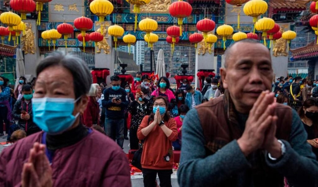 En Hong Kong, el mayor templo taoísta de la ciudad, Wong Tai Sin, esta cerrado por la pandemia, pero la gente acudió a encender incienso y rezar a otros más pequeños que sí estaban abiertos.
