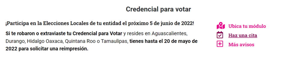 Cabe destacar que en caso de aquello que no puedan tramitar su INE antes del 20 de mayo no podrán emitir su voto el próximo 05 de junio.