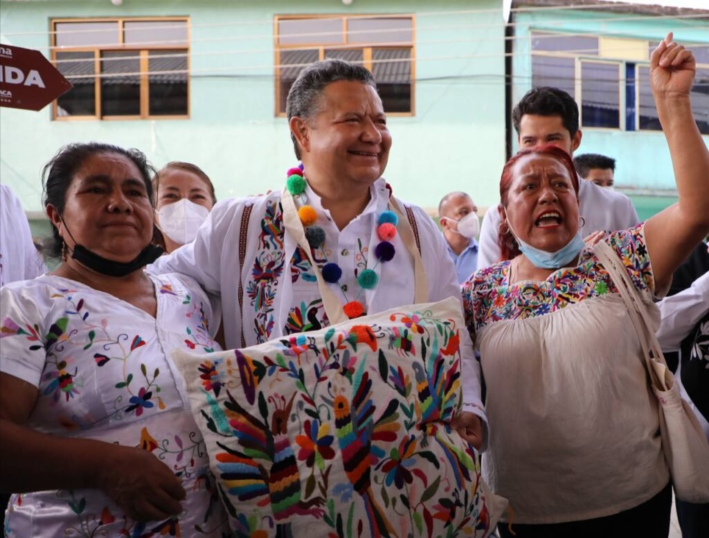 El candidato morenista sostuvo un encuentro con mujeres artesanas de la comunidad de San Nicolás, en el municipio de Tenango de Doria.