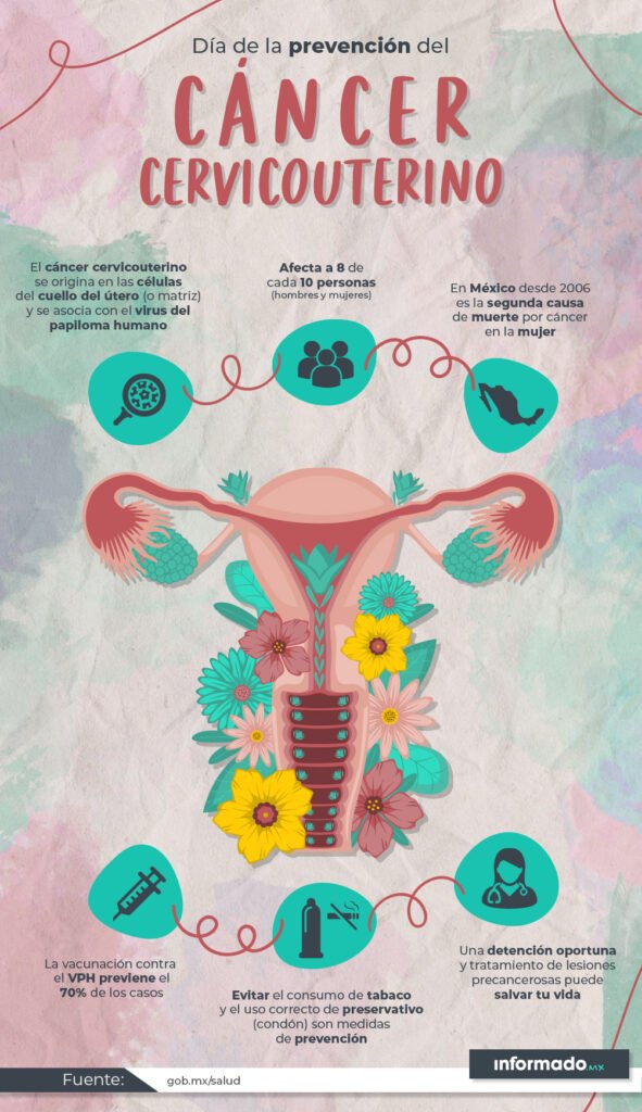 En 2020, el cáncer cervicouterino ocasionó en México cuatro mil 185 decesos y la tasa de fallecimientos fue de 11 por cada 100 mil, con edad promedio de 53 años, destacó la Secretaría de Salud.