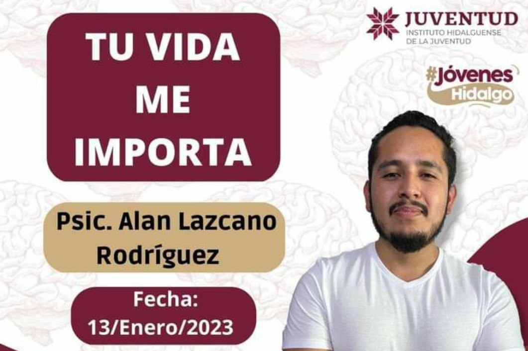 En el marco del Día Internacional de la Lucha Contra la Depresión, la Secretaría de Desarrollo Social a través del Instituto Hidalguense de la Juventud impartirá la conferencia virtual “Tu vida me importa”.