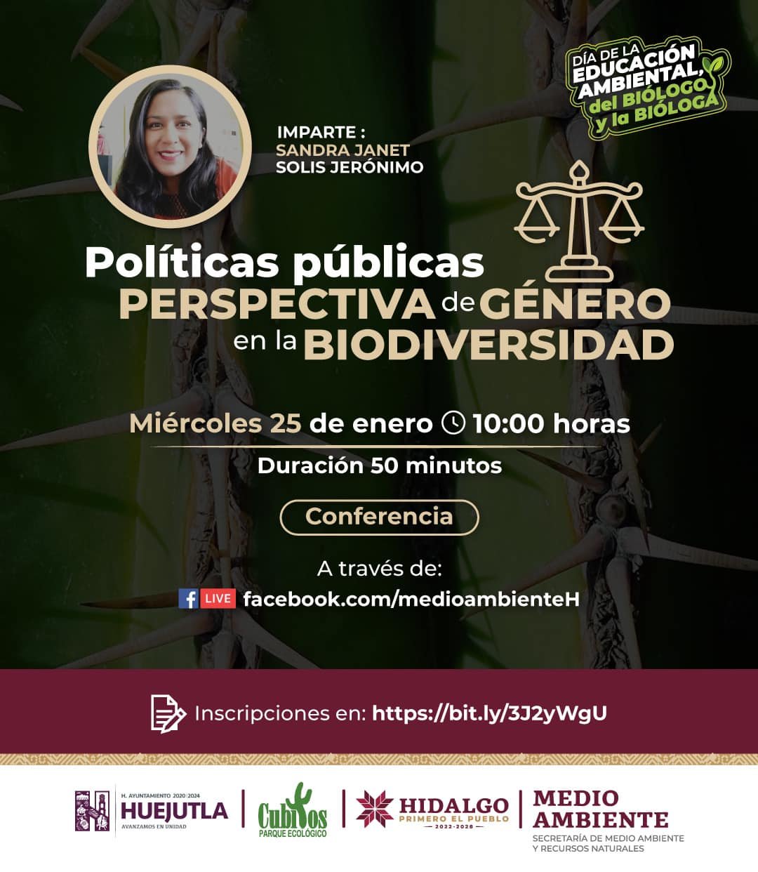 Será impartida la conferencia “Políticas públicas y perspectiva de género en la biodiversidad” por Sandra Janet Solís Jerónimo a partir de las 10:00 horas.